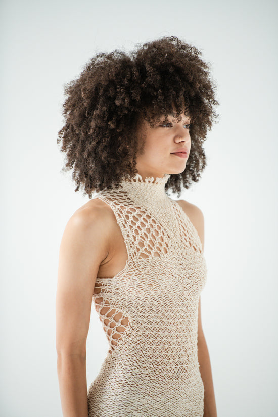 The Turtle Tube Dress is designed to hug your body and offer a full-body gentle compression. Made from a mix of Supima cotton and Lyocell Tencel yarns, this form-fitting dress highlights the capabilities of lace braiding technology for garments that are functional, comfortable and glamorous in their organic nature.